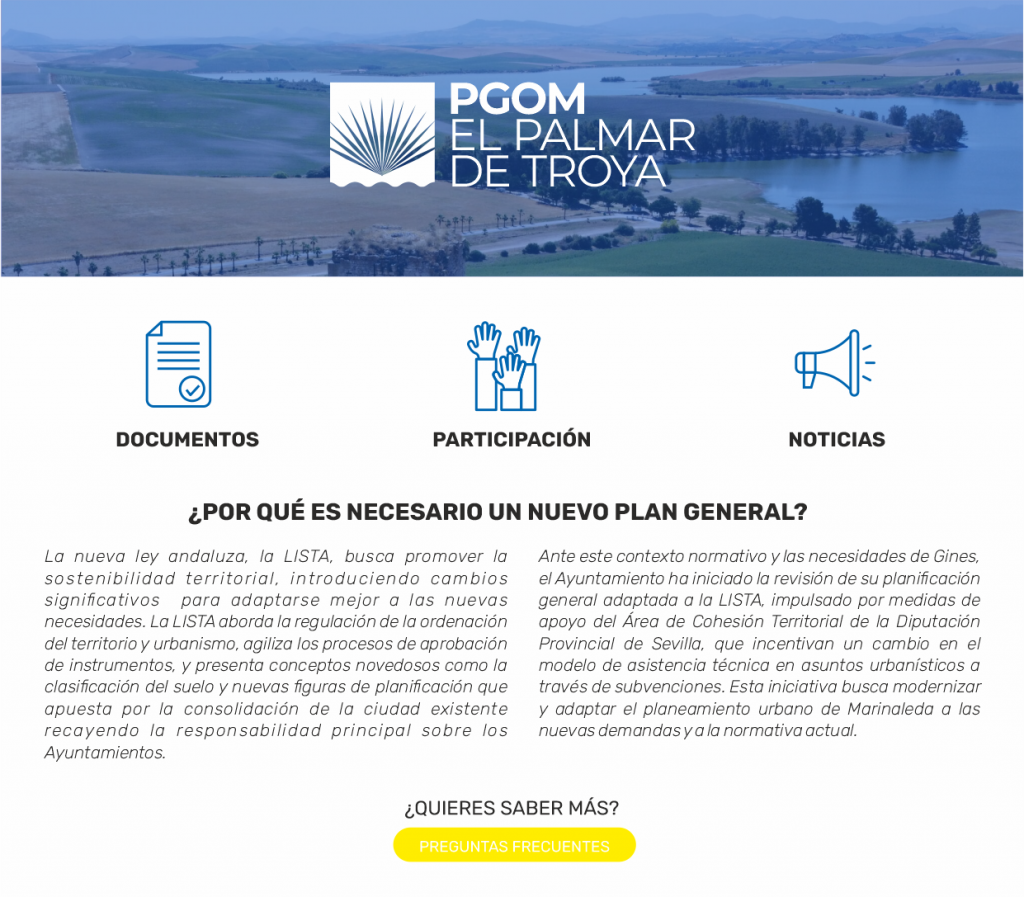 ¡Bienvenidos a la nueva web del Plan General de Ordenación Municipal (PGOM) de PGOM de El Palmar de Troya!